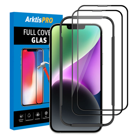 ArktisPRO iPhone 14 FULL COVER Displayschutz GLAS - hüllenfreundlich - 2er Set
